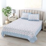 100% Pure Cotton Traditional Printed Bedsheet for Double Bed King Size Bedsheet with 2 Pillow Covers
